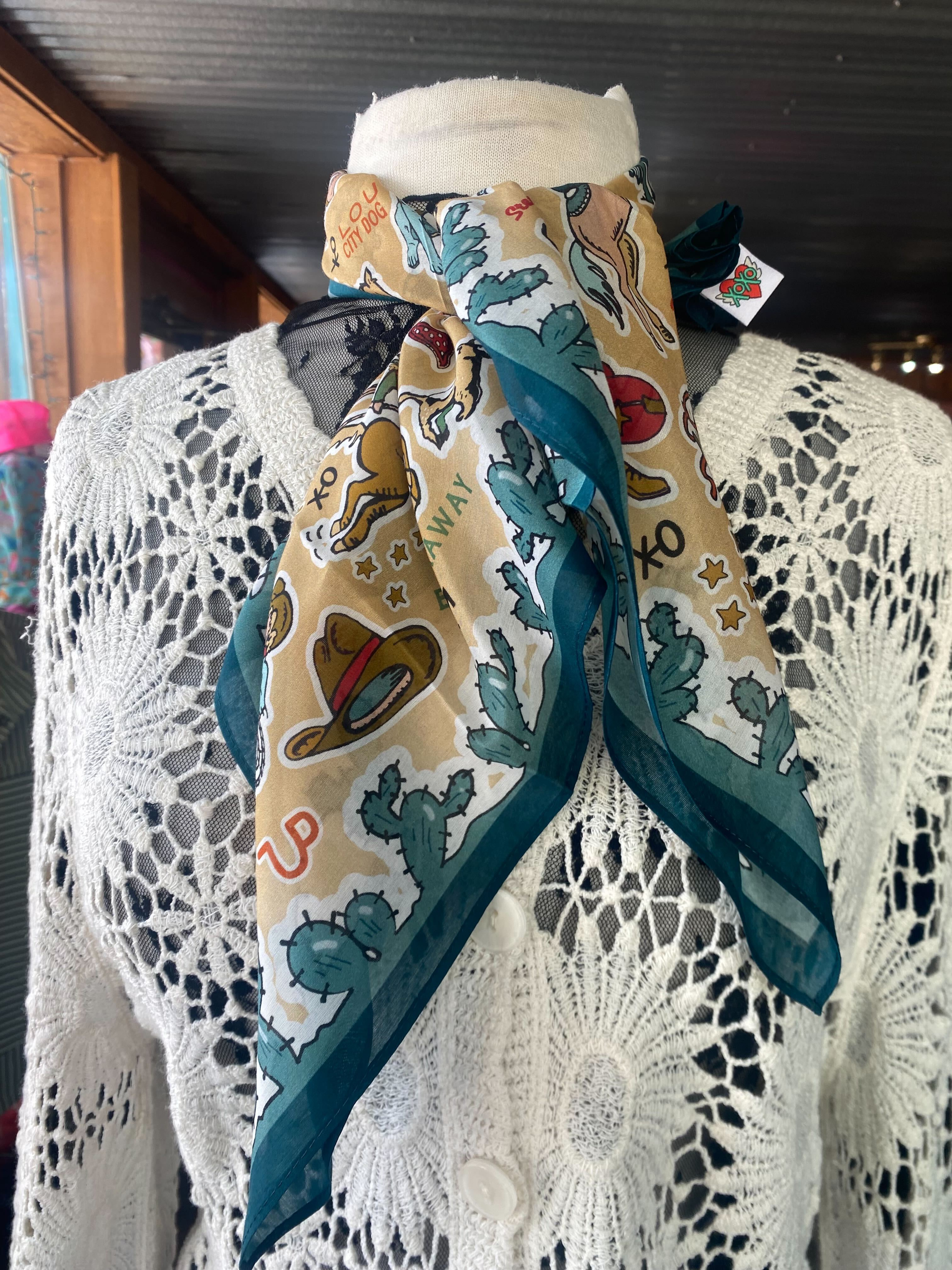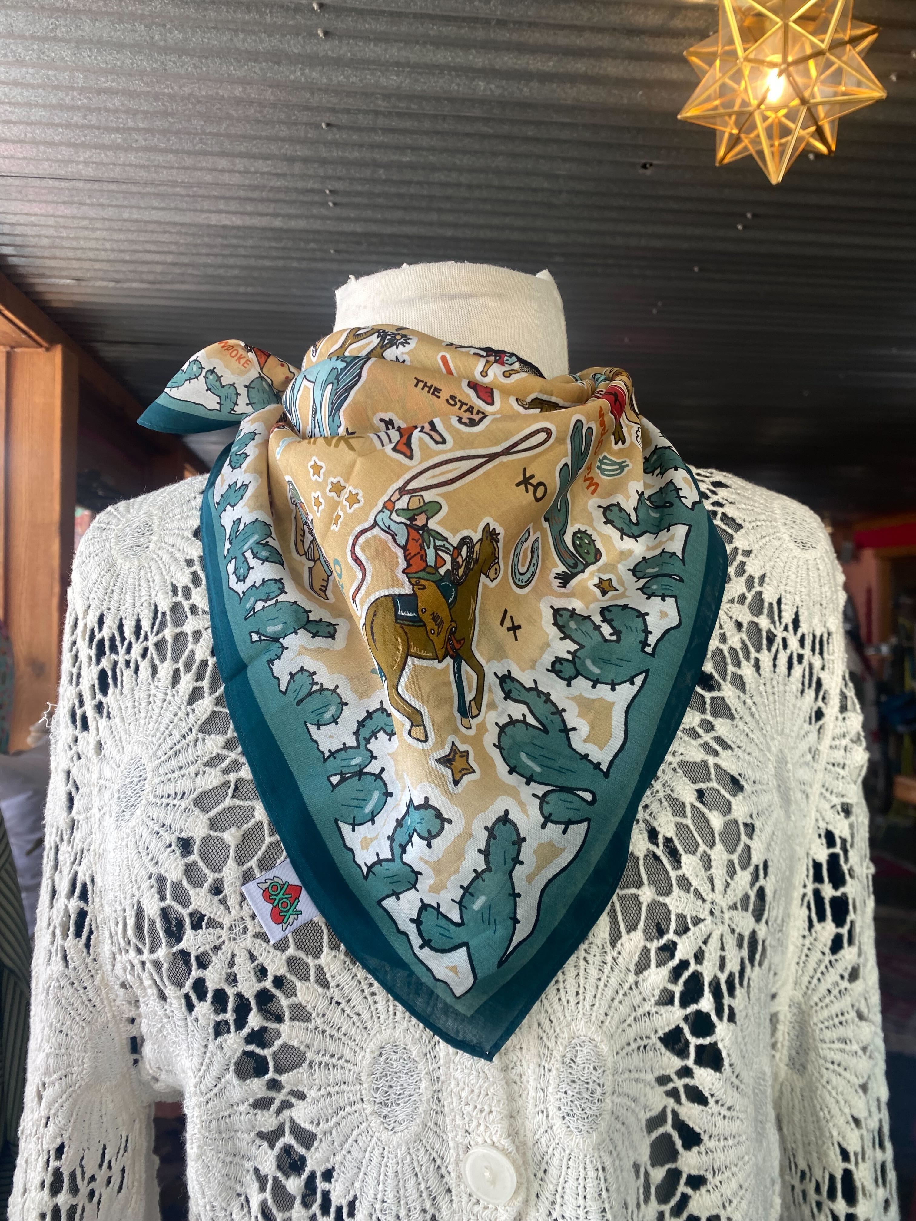 Saddle up your style with the All Things Cowboy Shorty Rag! This bold little scarf packs major Western flair—whether you tie it around your neck, your wrist, or your hat. Made for ranchers, rebels, and rodeo queens alike.