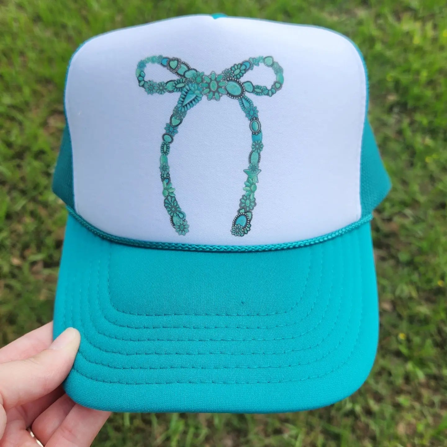 Experience the fusion of style and comfort with our Turquoise Bow Trucker Hat. This snapback trucker cap is designed to fit and suit women perfectly. It's not just a hat, but a statement piece that brings out the western spirit in you.