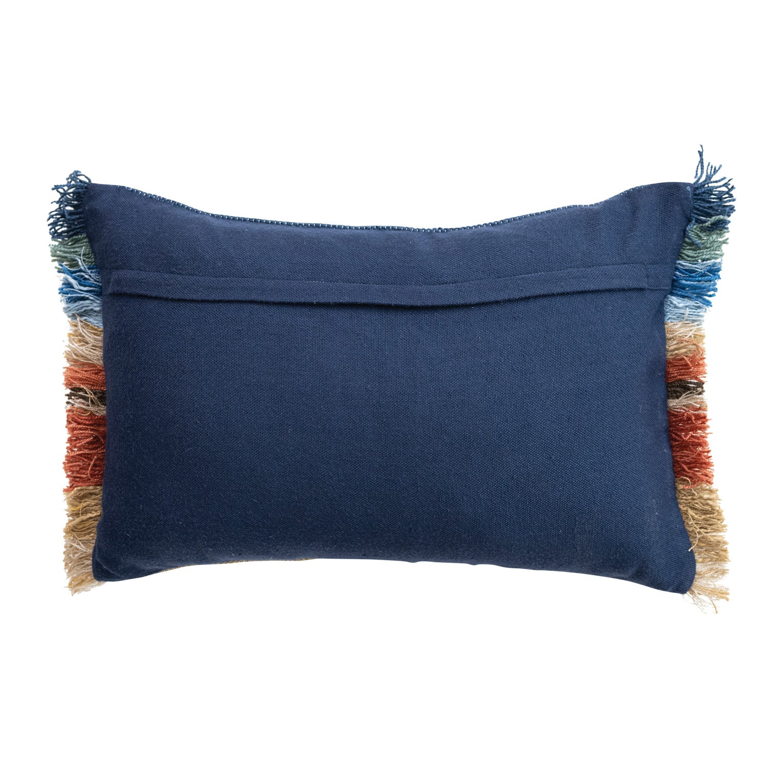 This woven indoor/outdoor lumbar pillow features a colorful sunset design with embroidered details and eyelash fringe for added texture. Sized at 24" L x 16" H, it brings a warm and decorative accent to patios, porches, or indoor spaces.