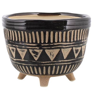 Bring a touch of rustic charm to your table with the Apache Print Ceramic Heritage Bowl. Its large size and terra cotta-like finish create an earthy backdrop, while the hand-painted debossed pattern adds a distinct tribal character. This footed ceramic bowl serves as both a functional piece and a striking centerpiece that captures southern warmth and heritage.