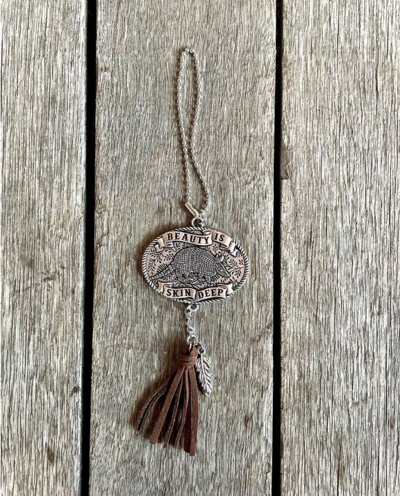 Hang your heart on these delightful armadillo car charms, crafted right here in Round Top, Texas with genuine southern spirit. Each charm features sturdy zinc construction paired with a charming faux leather tassel and feather accent. Perfect for decorating your rearview mirror, sprucing up your backpack, or adding a touch of whimsy anywhere you please. Mix and match to create your own unique collection—stack 'em up and let your personality shine!