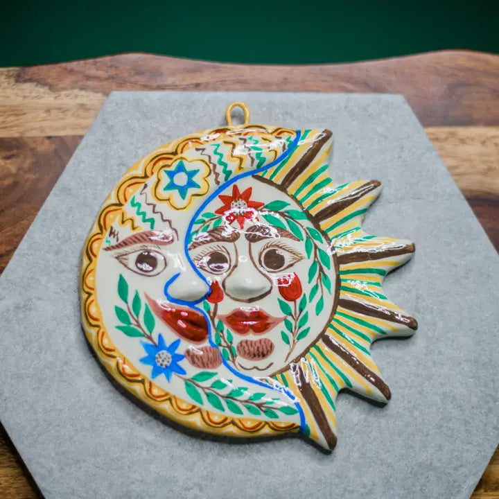 The Ceramic Eclipse Wall Art adds a vibrant touch of Central American artistry to any space. Handcrafted by artisans in Guatemala, its unique design brings cultural flair and character to your home décor.