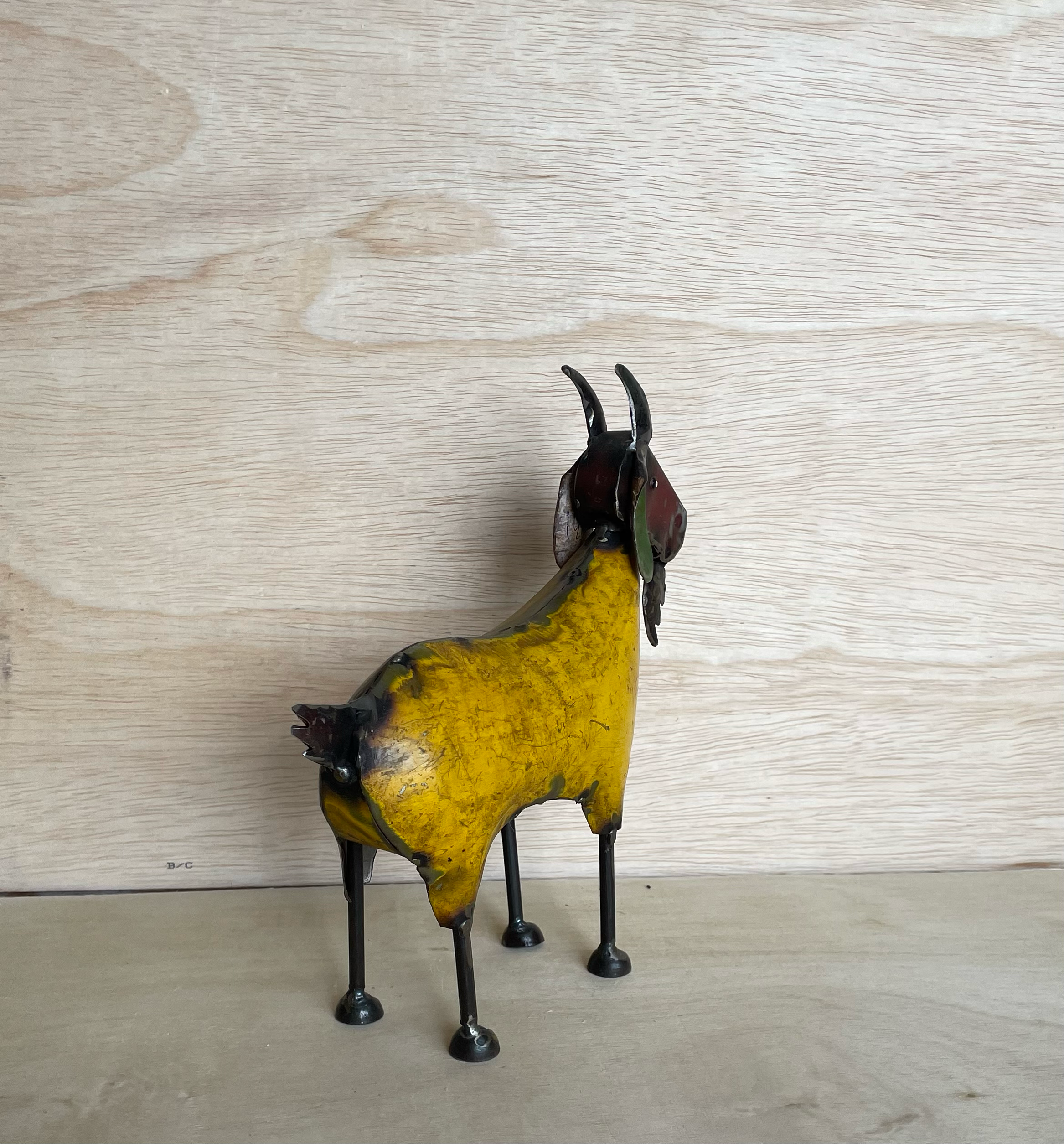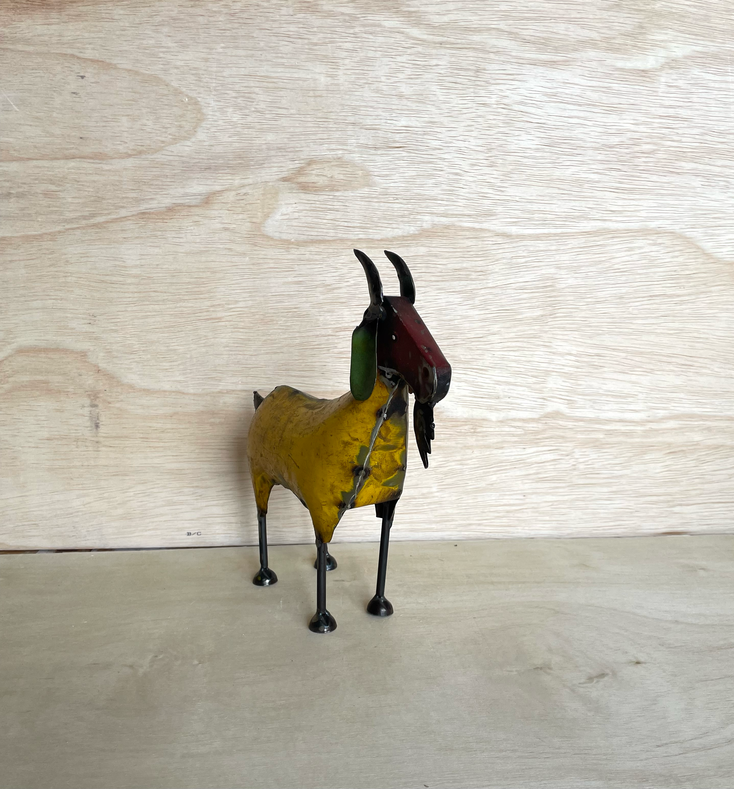 This recycled metal goat adds rustic charm and playful personality to your décor collection. Each sculpture is ethically handmade in India, offering a unique, artisan-crafted accent.