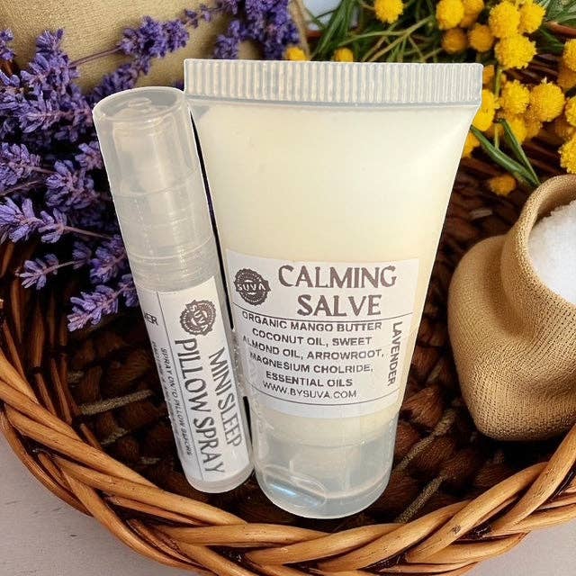 Our two best-selling favorites come together in one charming gift set, perfect for sprucin’ up any basket or box. The Lavender-scented magnesium salve, housed in a handy flip-top tube, is great for travel and everyday use. Just keep in mind, this salve is heat sensitive, so it's best stored in a cool, air-conditioned spot to keep it in tip-top shape.