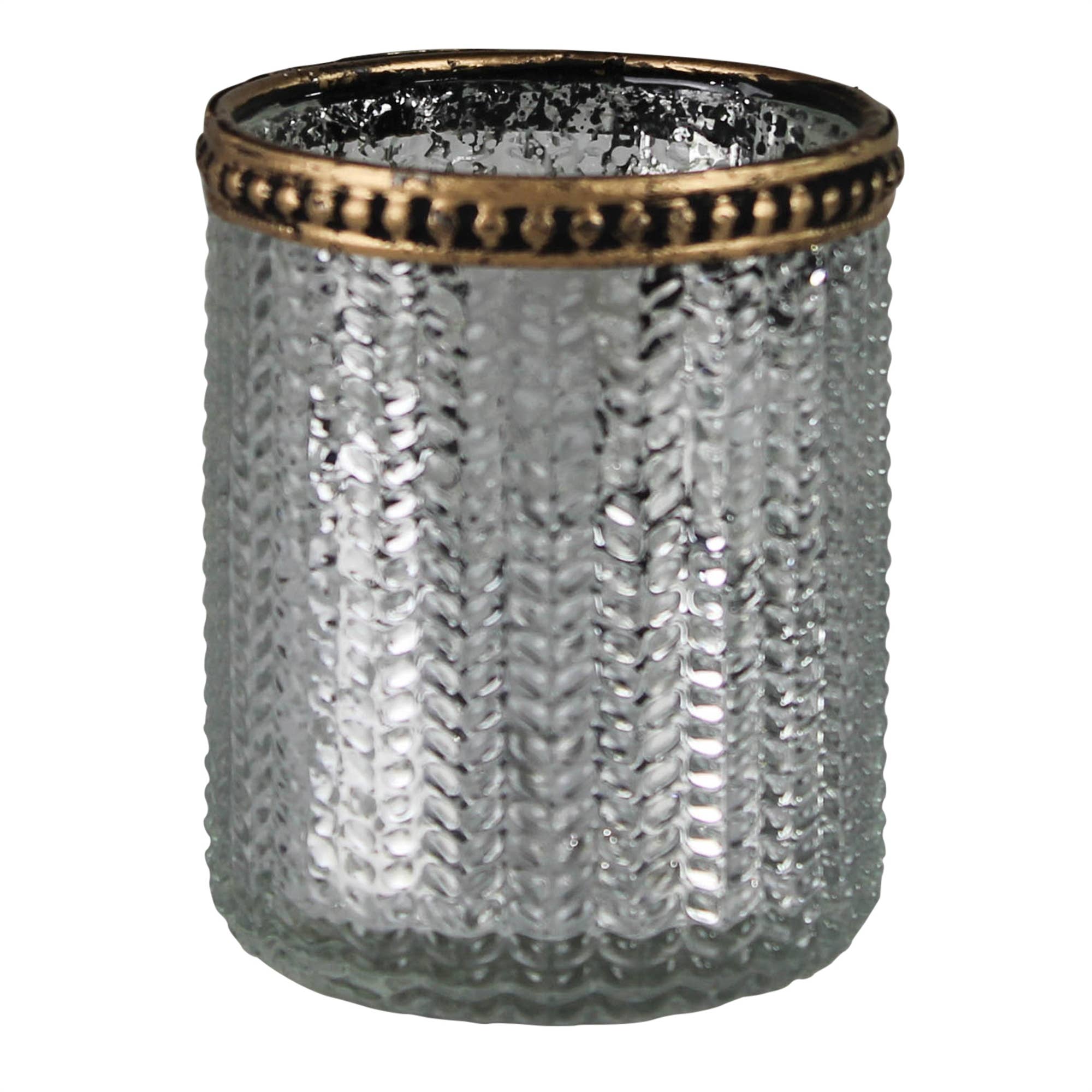 Add a touch of elegance to any space with the Stras Tealight Holder. Crafted from textured glass with a sleek silver metal border, this votive holder casts a warm, inviting glow when lit. Perfect for creating a cozy ambiance on a tabletop, mantel, or shelf. A beautiful accent piece for any decor style!