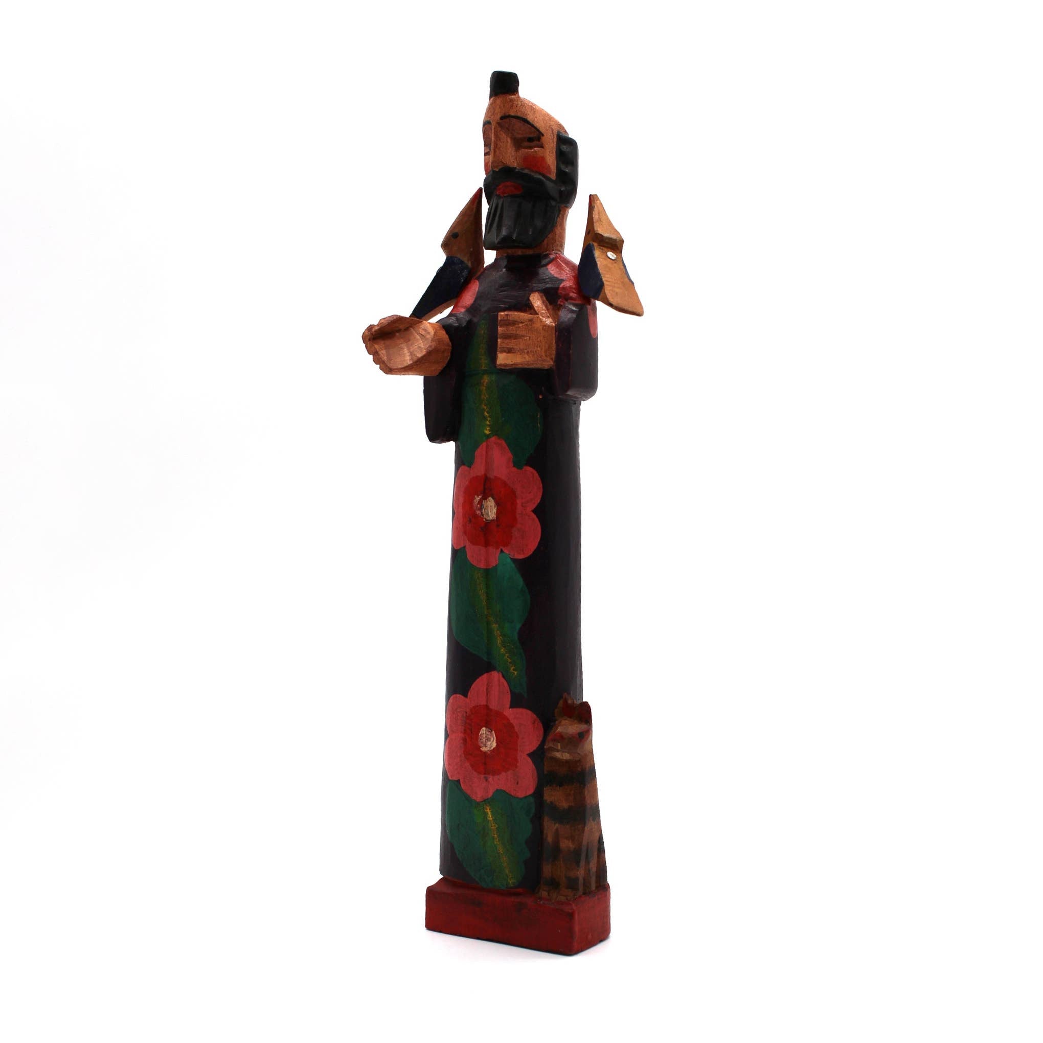 Saint Francis is a 15" tall wooden figure hand-made by artisans in the highlands of Guatemala. Perfect for living room decor and to gift for the holiday season.