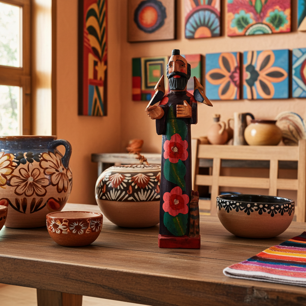 This statue holds deep cultural significance, blending catholic beliefs with mayan traditions, and is commonly found in family shrines.