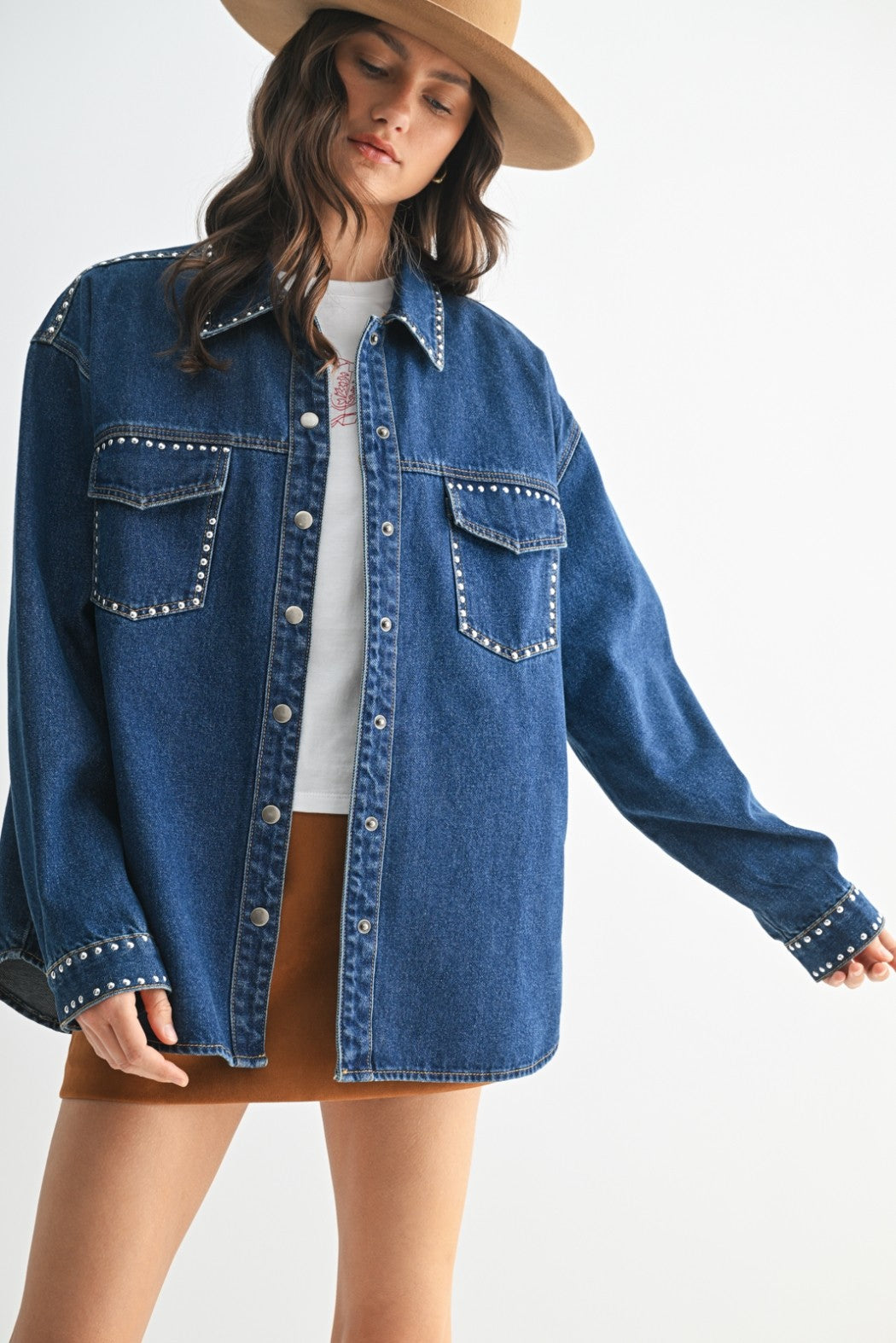 The Rebel Ridge Denim Stud Jacket combines classic southern ruggedness with a bold edge. Featuring durable, functional buttons and stylish stud accents, this jacket offers both practicality and personality. Perfect for layering over your favorite tees, it’s built to handle everything from country roads to city streets while keeping you looking effortlessly cool.