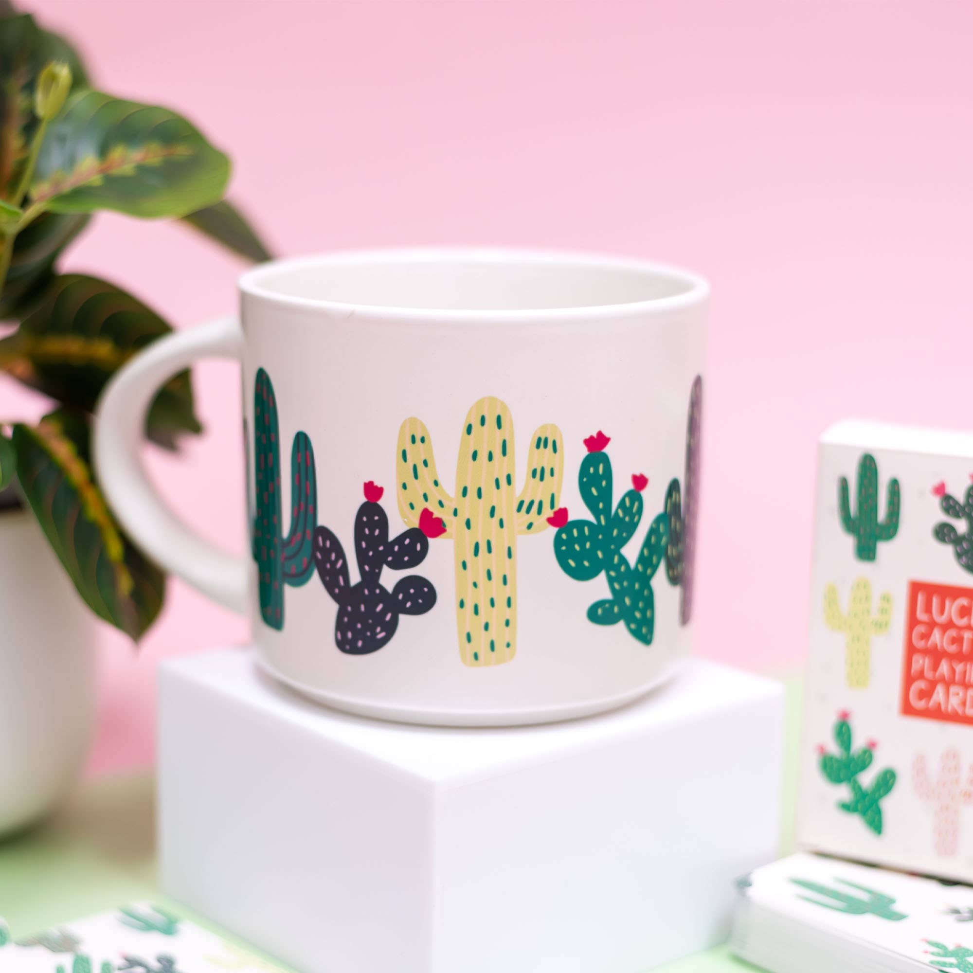 Add a little desert delight to your day with the Cacti Ceramic Mug - Cream. Showcasing a sweet pink and green cactus pattern, this mug is just right for sippin’ your morning joe or unwindin’ with a cozy cup of tea. It’s a charming way to bring a bit of southwestern warmth to your everyday brew.