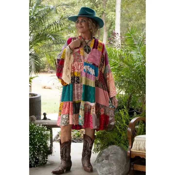 Embrace your free spirit in this Wild at Heart Patch Tunic by Jaded Gypsy. Crafted with boho charm and a touch of rebellious soul, this tunic features eye-catching patches that tell a story all their own. Perfect for the gal who dares to be different, it pairs beautifully with your favorite denim or leggings for an effortlessly chic look. Whether you're heading to a music festival or just living your best life, this piece celebrates the wild, untamed heart that makes you uniquely you. Comfort meets style in a way that'll have you reaching for it again and again.