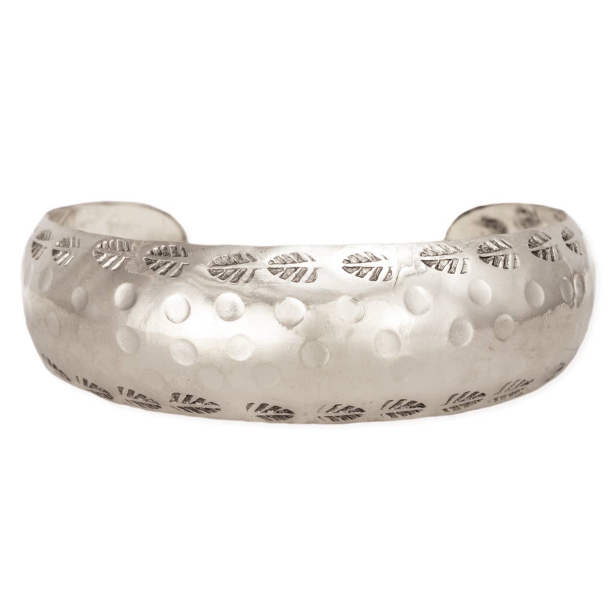 This hammered silver dome cuff bracelet brings a touch of rustic elegance to any outfit, sugar. The bold textured finish and delicate leaf engraving give it that perfect boho charm, while the wide cuff design makes a real statement. Stack it up or wear it solo for a little extra sparkle and sophistication.
