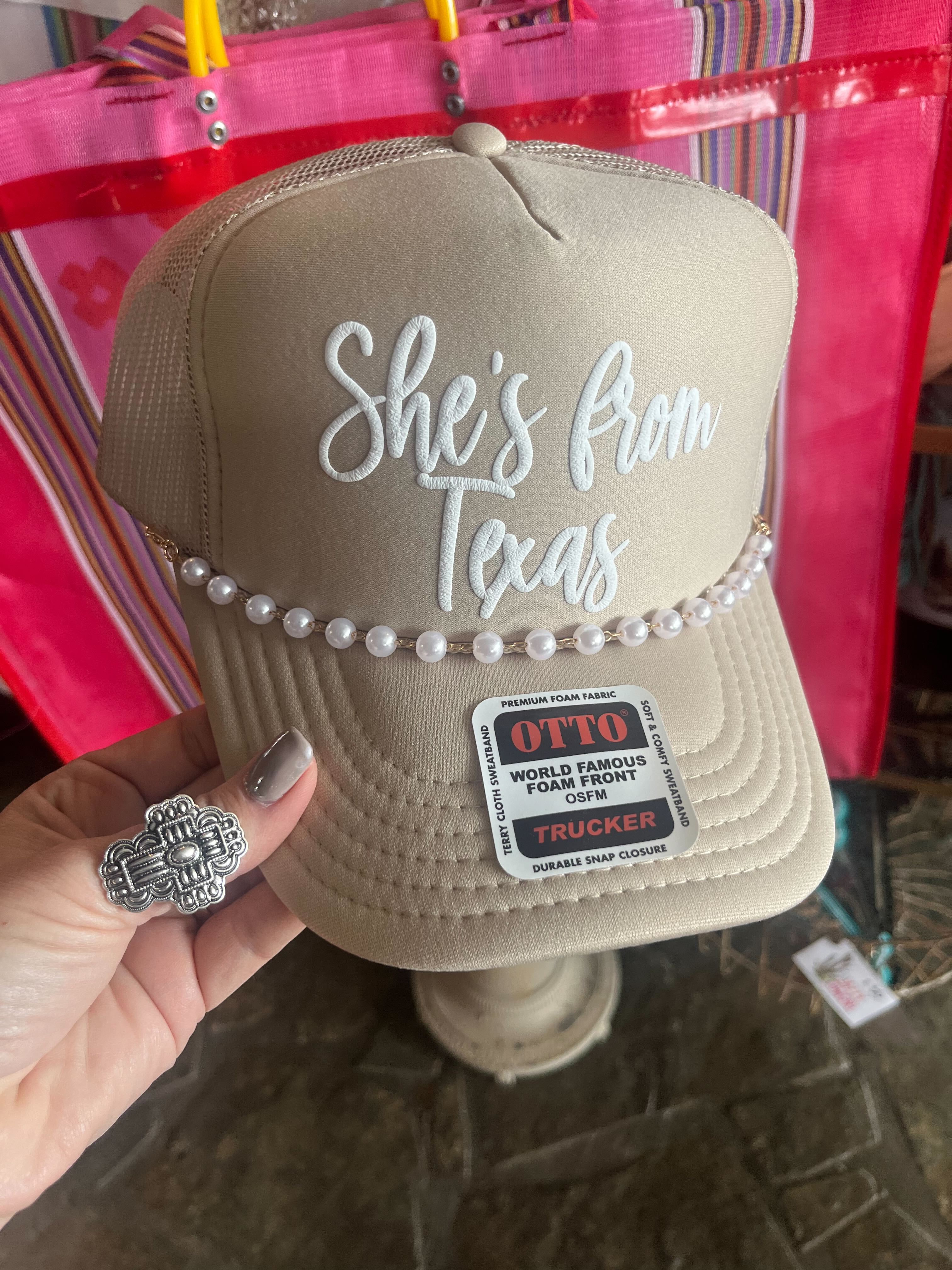 Bold, classic, and full of southern attitude, the She’s From Texas Trucker Hat is the perfect finishing touch for any western outfit. Featuring a statement front design with a structured trucker fit, this hat brings effortless cowgirl energy whether you’re headed to the rodeo, running errands, or soaking up the sun.