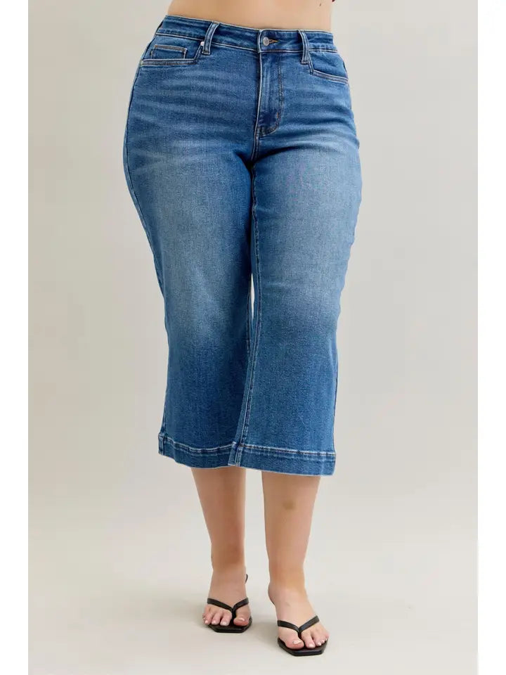 The MR Wide Crop Vintage Pkts & Wide Hem Jeans deliver effortless cool with a modern denim twist. Designed with Judy Blue’s signature comfort stretch and unique wash, this cropped wide-leg style brings laid-back California vibes to your everyday wardrobe.