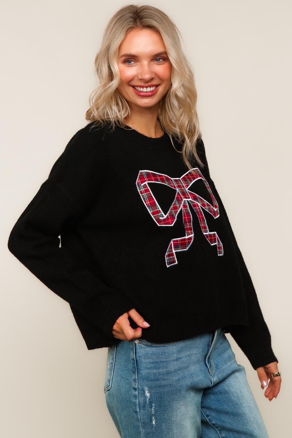 Celebrate the season in true cowgirl style with this charming Holiday Y'all Bow Sweater. Featuring a festive embroidered bow and classic plaid woven color block design, this oversized pullover brings cozy warmth with a touch of Western flair. The relaxed, loose fit and round neckline make it perfect for layering through the holidays, while the long sleeves keep you comfortable during those chilly gatherings. Whether you're sipping hot cocoa on the porch or heading to a holiday shindig, this sweater delivers that perfect blend of comfort and Southern charm that'll have everyone saying "y'all look amazing!"