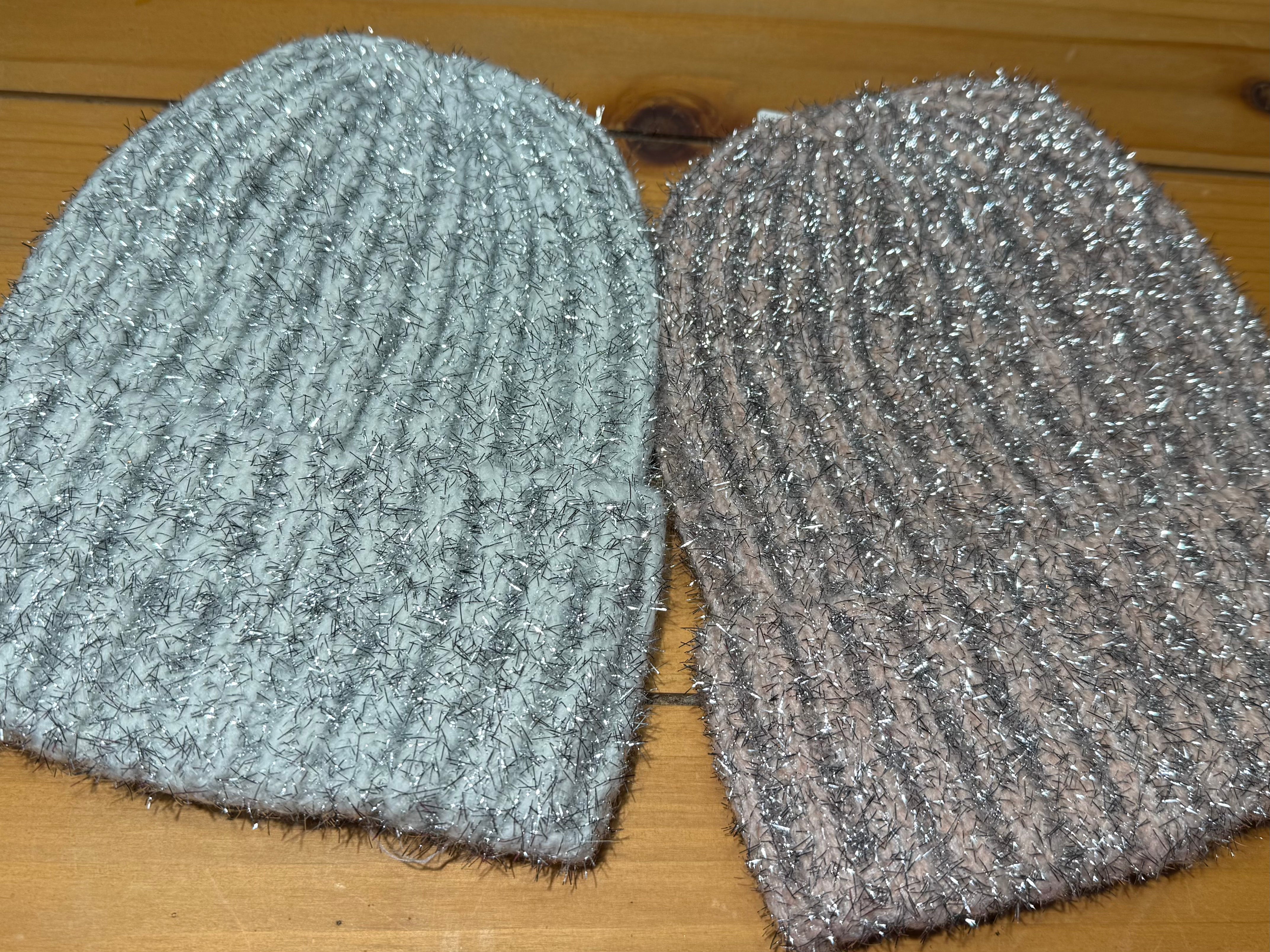 Keep your ears and head warm all winter long with these adorable beanies. Featured in white or a rose pink both with some shimmer to them!