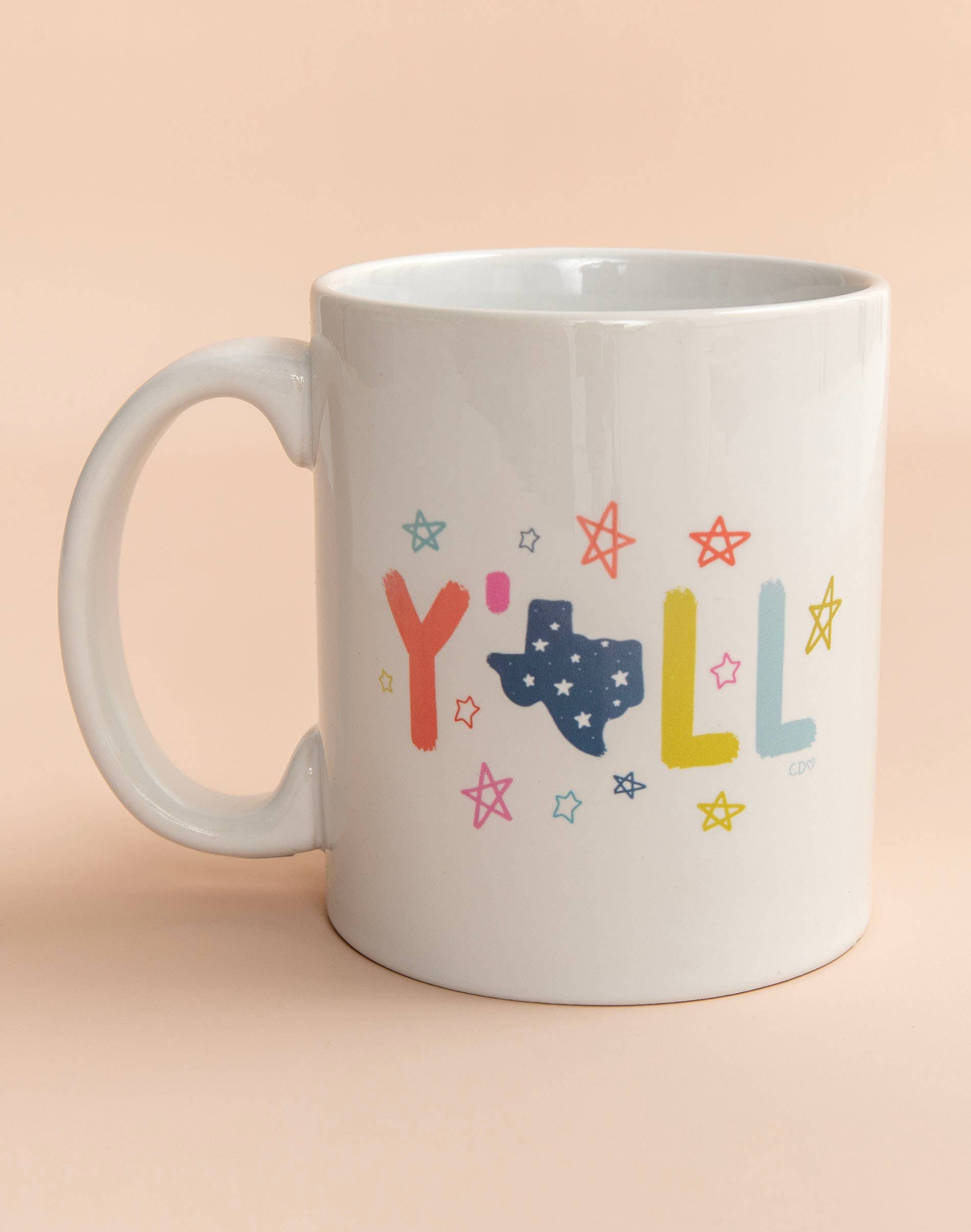 This coffee cup is perfect for your favorite Texan! Featuring the southern slang "Y'ALL surrounded by Texas accents making it a fun and unique way to show state pride! Enjoy sipping your coffee under those early Texas sunrises or by the fire on a cool winter night.