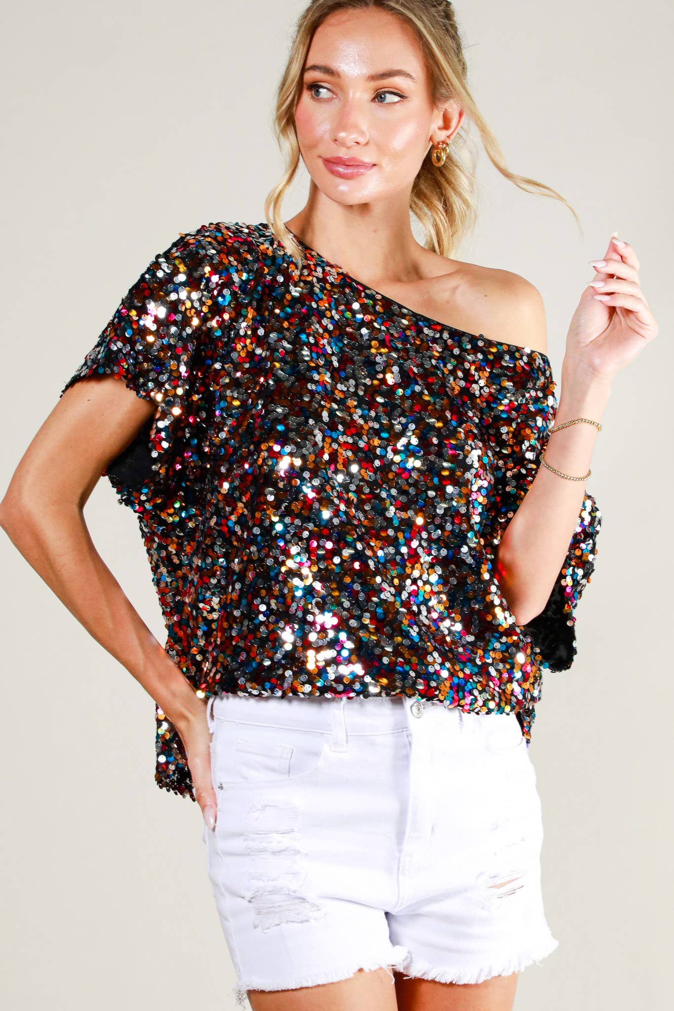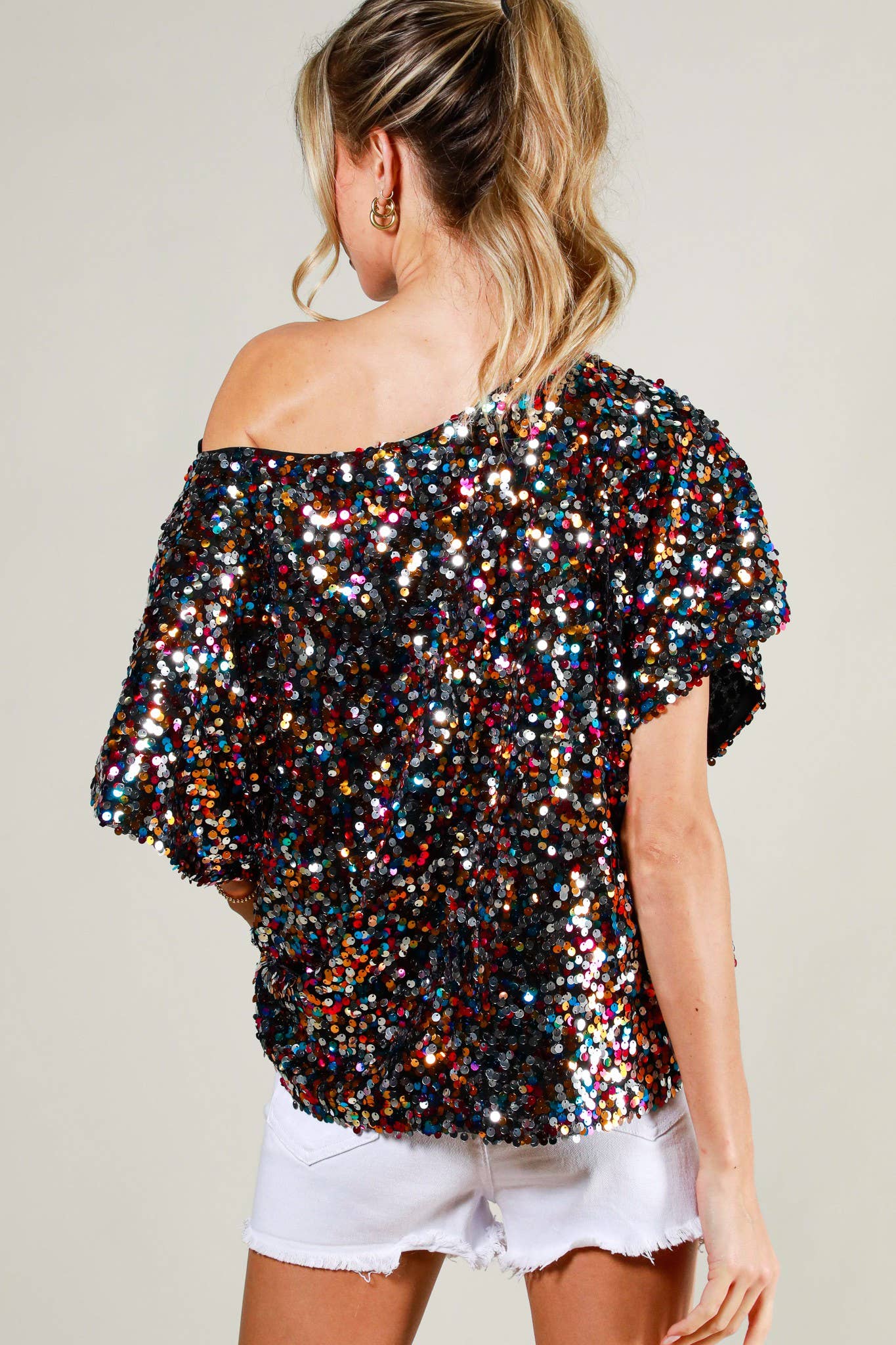 Step into the night with a shimmer that turns heads from every corner of the room. This southern-chic sequin dolman top brings that perfect mix of comfort, glam, and effortless charm. Whether you're headed out for a holiday party, a girls’ night, or a little honky-tonk fun, this blouse keeps you sparkling all the way.