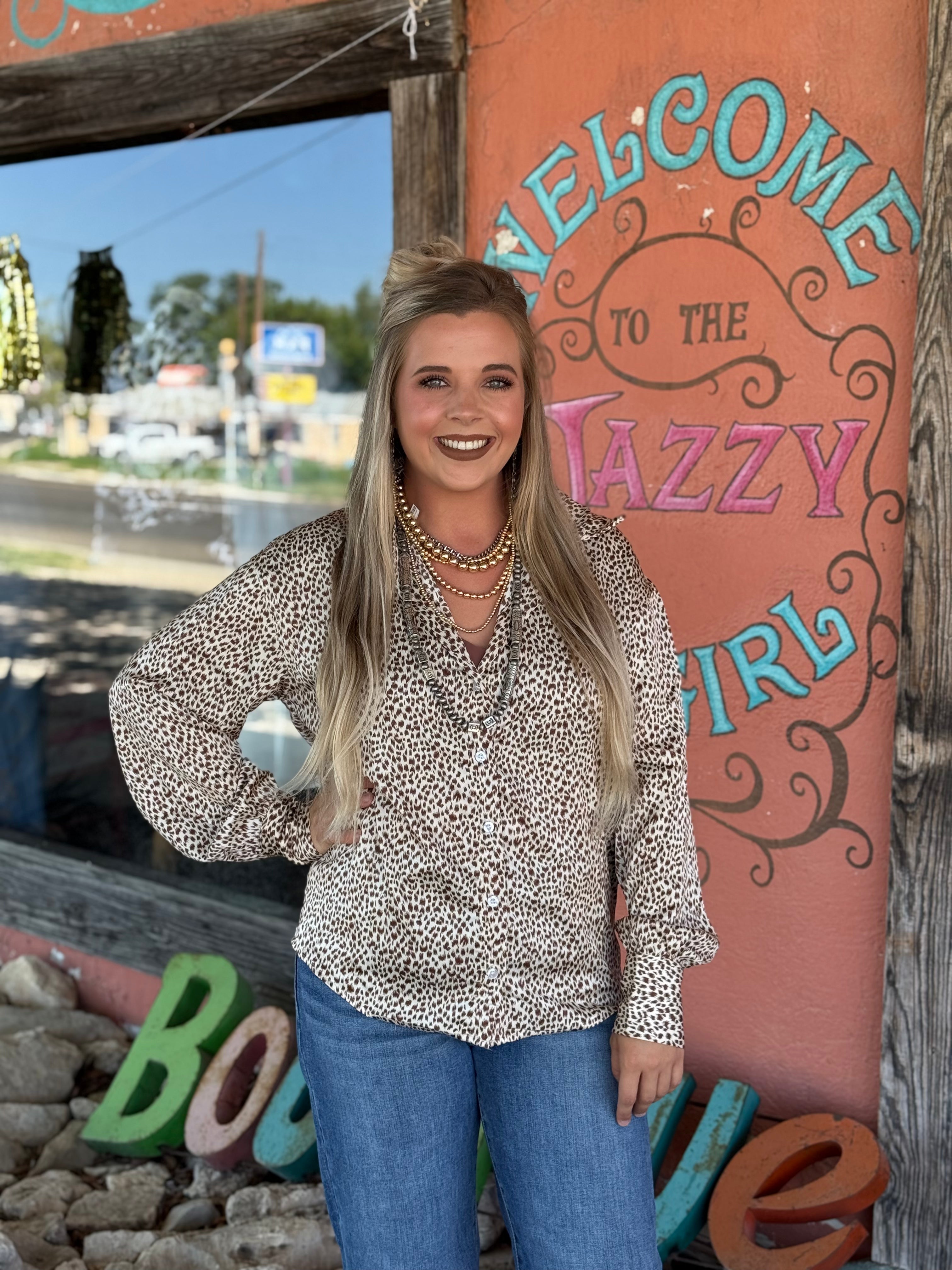 Bring bold style to your wardrobe with this chic animal print top in cream and brown. Its soft, lightweight fabric and relaxed fit make it perfect for all-day wear while adding just the right amount of wild charm to your look.