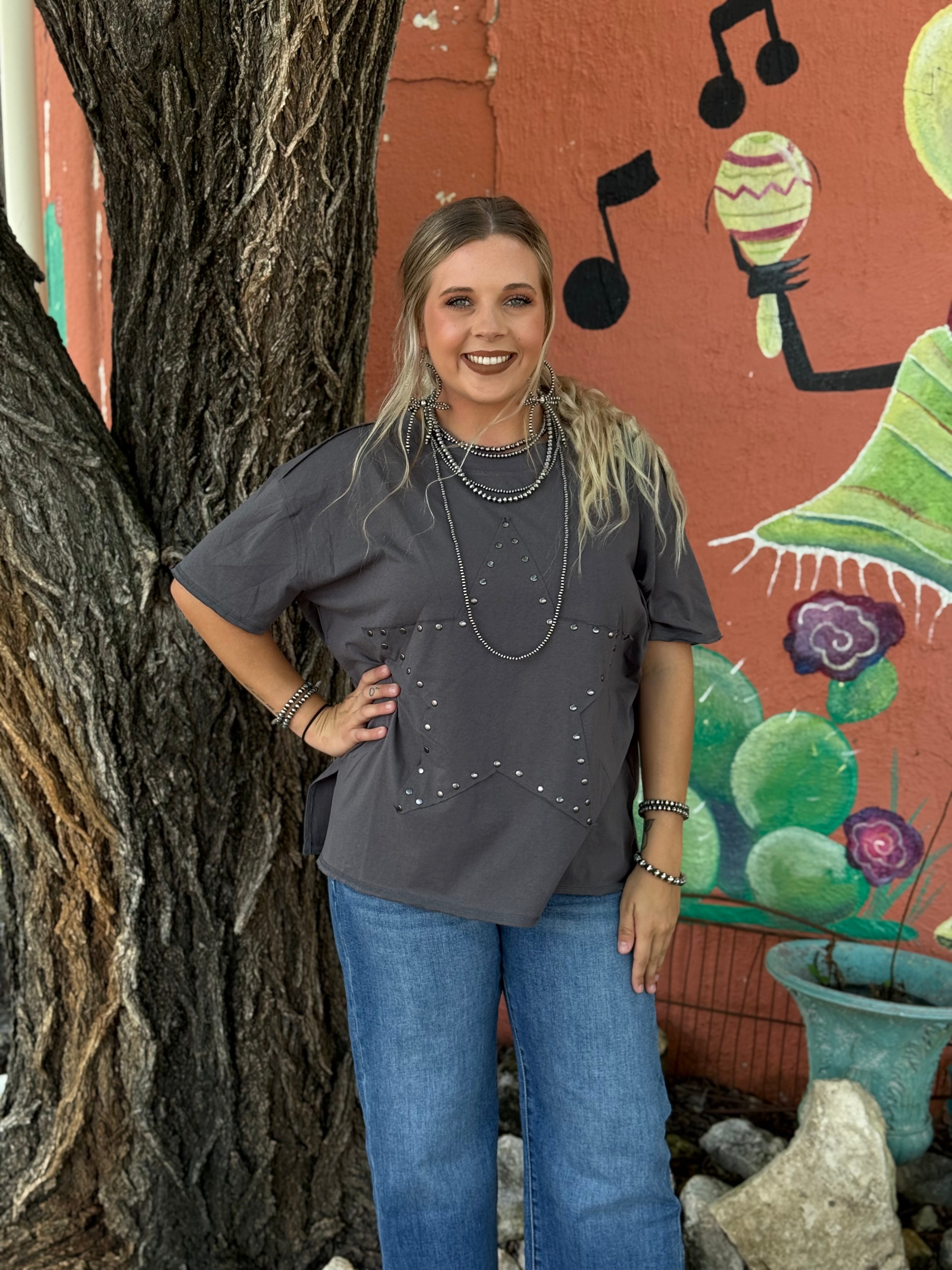 Stay effortlessly cool with the Springfield Solid Knit Top. Featuring a soft round neckline, metallic star patch button, and a breezy loose fit, this lightweight knit is your go-to for laid-back days with a touch of charm.