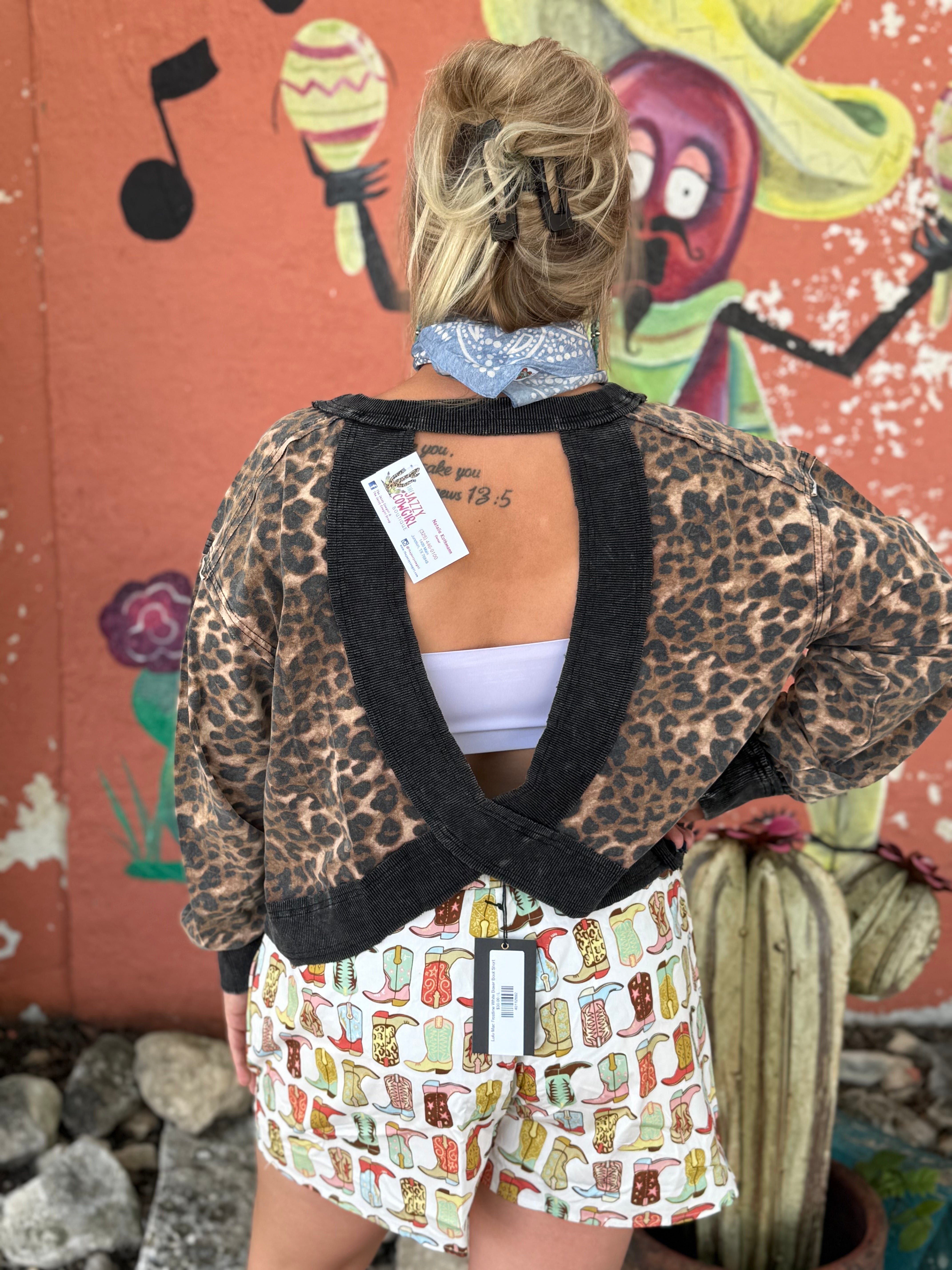 This Long Sleeve Leopard Print Knit Top combines bold animal print with thoughtful design details. Crafted from lightweight cotton knit, it features a round neckline with a contrast trim, as well as matching contrast hem and cuffs for a polished finish. The back cut-out overlay adds subtle visual interest while maintaining comfort. Suitable for contemporary and plus sizes, this top offers a versatile yet distinctive addition to your wardrobe.